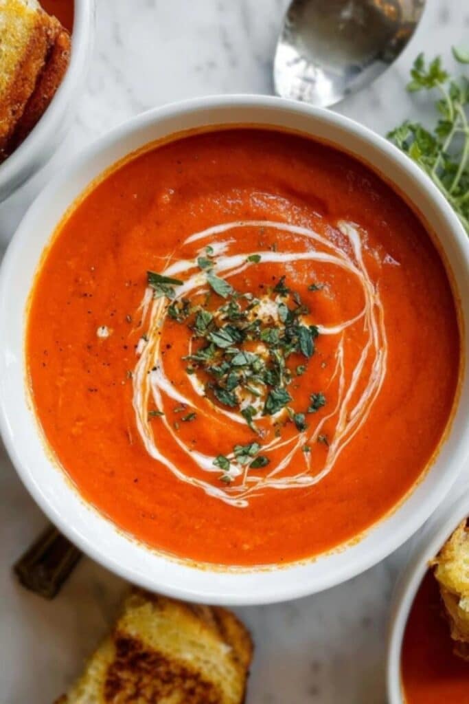 There’s something incredibly nostalgic about a bowl of homemade tomato soup. It’s the kind of dish that instantly transports you to a cozy kitchen on a rainy afternoon, wrapped in a warm blanket, watching steam swirl from your spoon. Growing up, tomato soup wasn’t just food—it was an event. My mom made hers from scratch, using garden tomatoes that she’d stew until soft and fragrant. I remember dipping grilled cheese into the thick red broth, watching it melt and mix with each bite.