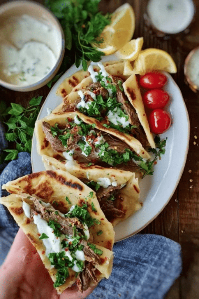 A lemon-garlic yogurt sauce wins because it’s cool, tangy, and it cuts through rich lamb. You can also use tzatziki-style sauce (yogurt, garlic, herbs), tahini-lemon sauce, or even a thin hummus smear plus hot sauce. Keep sauce thick so Leftover Lamb Flatbreads don’t get soggy.