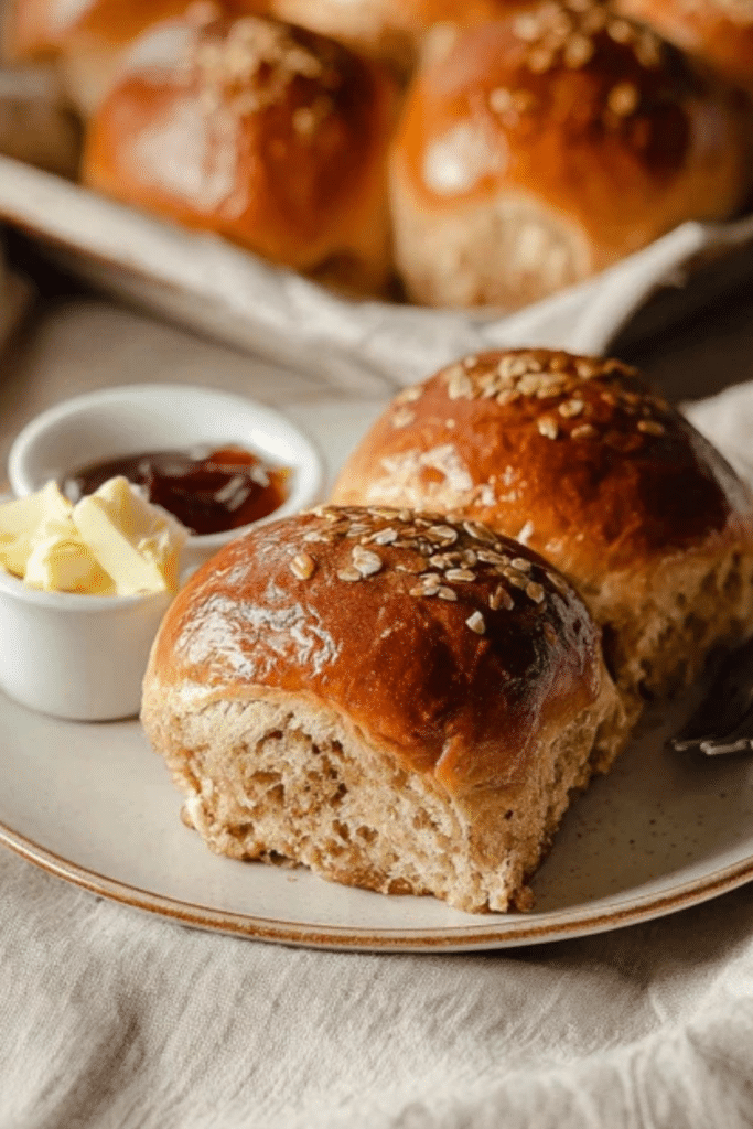 Oatmeal molasses dinner rolls are incredibly versatile. During the holidays, they’re a welcome guest beside dishes like lemon garlic salmon or even something rich like creamy cauliflower soup. Their slightly sweet flavor complements bold, savory mains perfectly.
