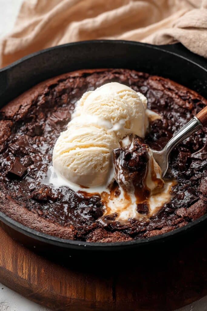 Leftover Skillet Brownie? Rare—but if it happens, cover the skillet with foil and refrigerate. To reheat, place in a 300°F oven for 8–10 minutes, or microwave individual portions with a damp paper towel. It revives beautifully.