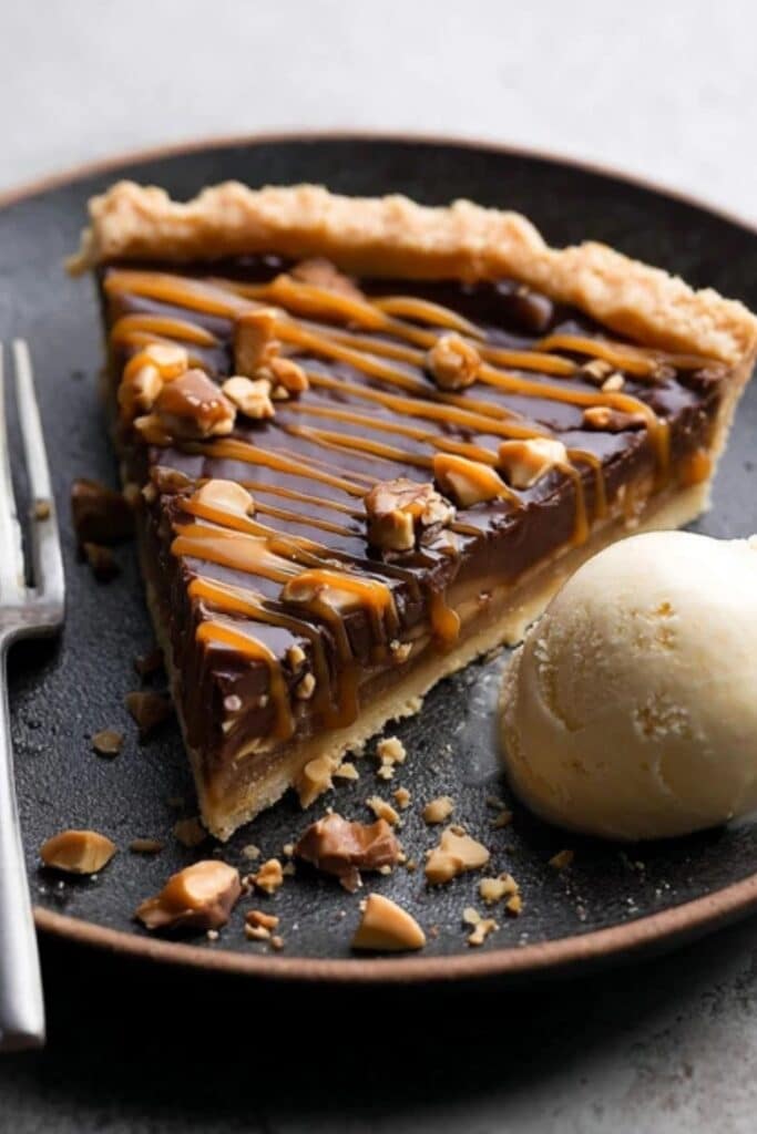 You can serve it with a scoop of vanilla ice cream, a drizzle of salted caramel, or even a hot espresso. It’s an ideal finish after savory dishes like Slow Cooker Mongolian Beef or cozy dinners featuring Cheesy Root Vegetable Gratin. Dessert boards with slices of Snickers Caramel Tart are also a crowd favorite!