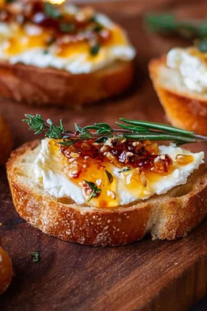 For a party-ready touch, top the crostinis with a sprinkle of crushed pistachios or drizzle a little balsamic reduction. It’s all about layering textures—crispy, creamy, sticky, and spicy.